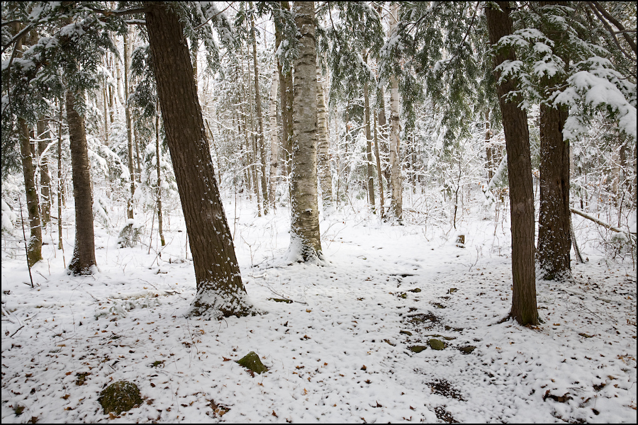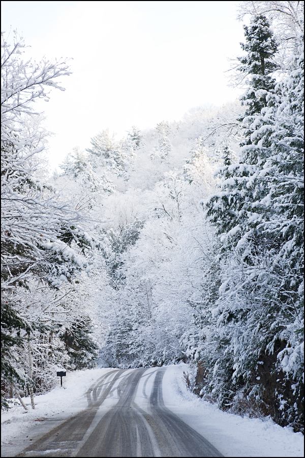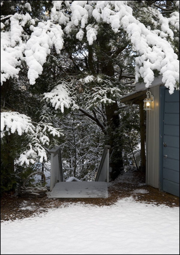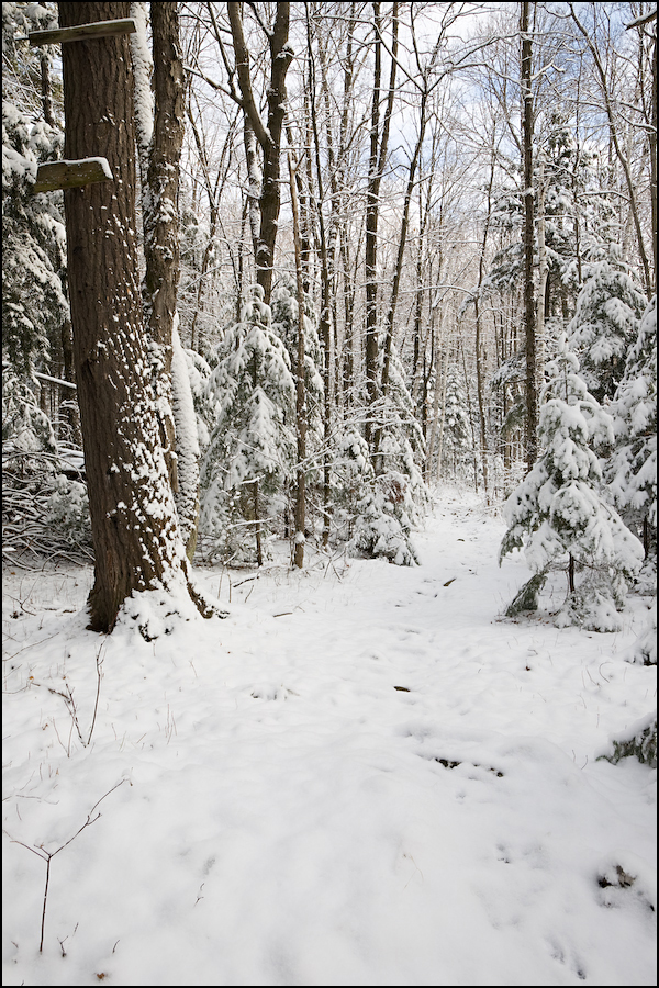 The snow fell the other night. Not much, but it stuck to the trees and produced a bit of a wonderland.