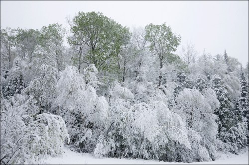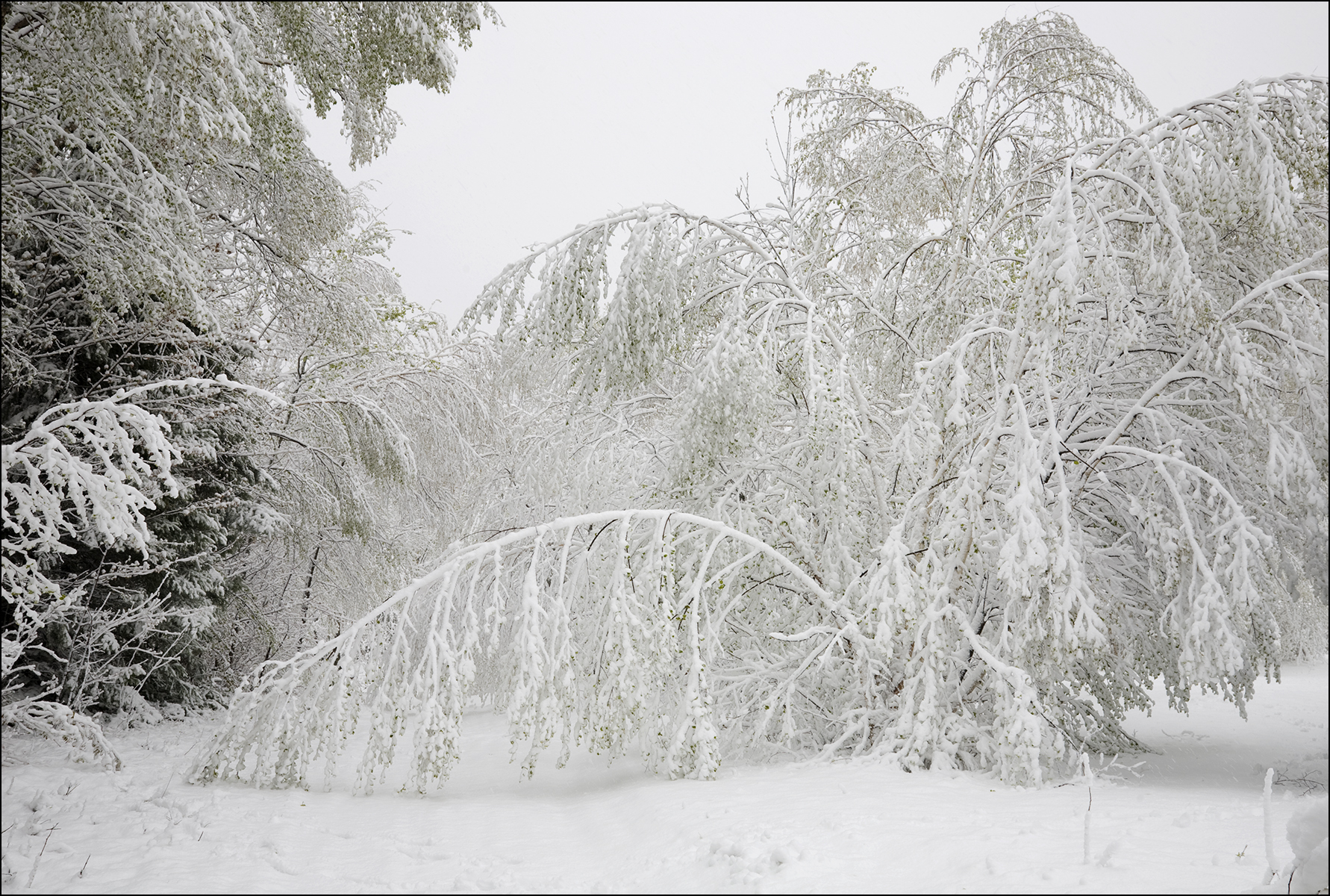 The curves of the branches under the snow attracted me to this scene.