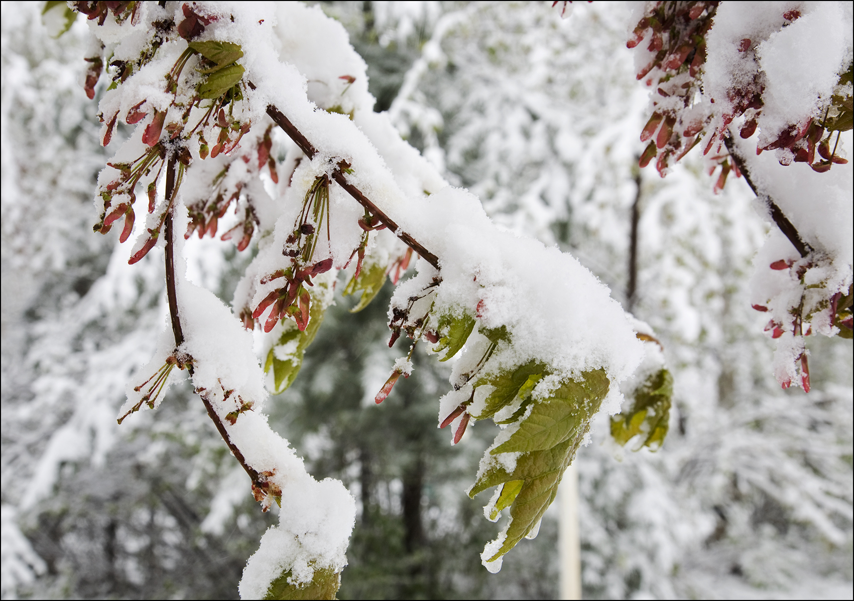 The maple keys will drop in a couple of days. The new leaves are in shock.
