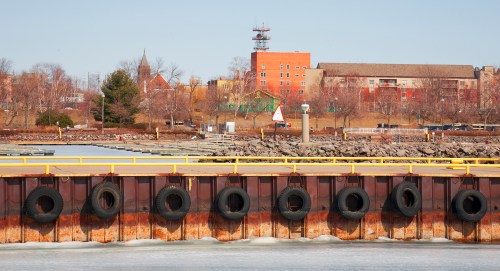 Our local cruise boat, The Chief Commanda spends the summer rubbing up against the tires when not navigating the lake carrying tourists and other sightseers.