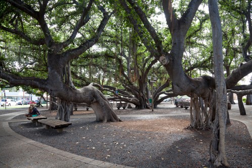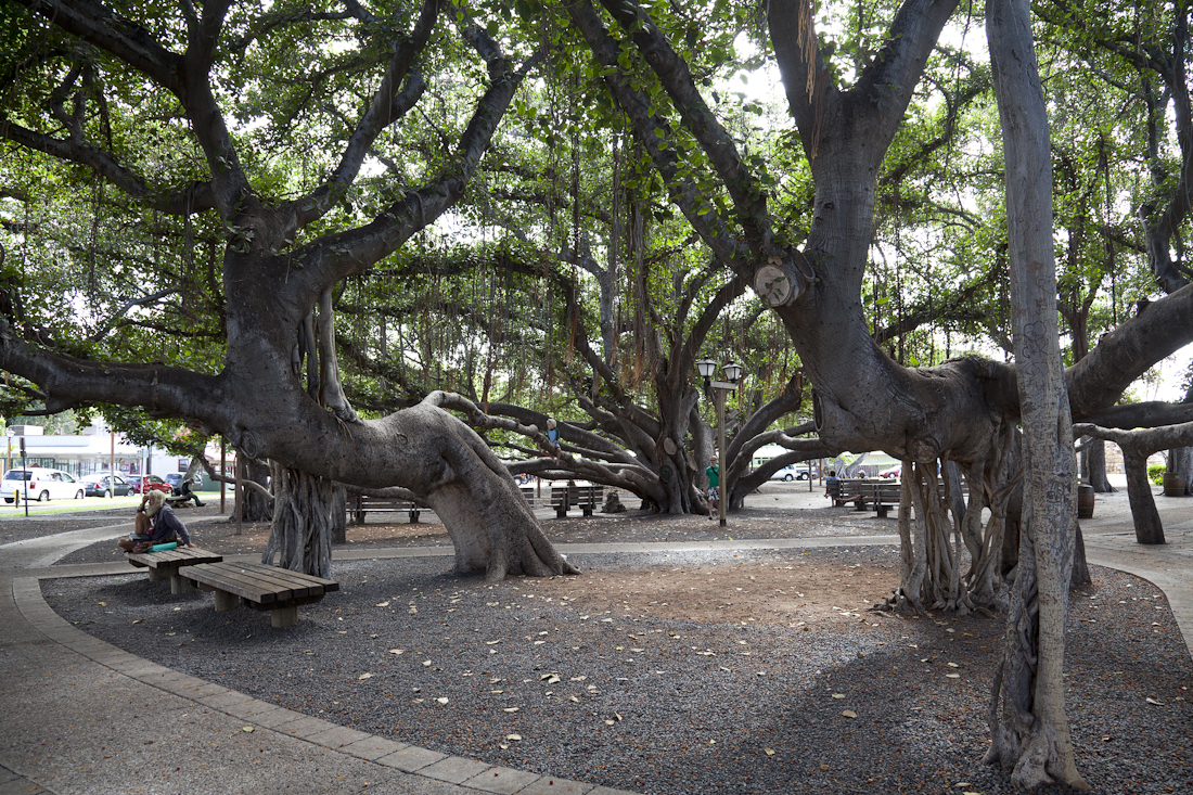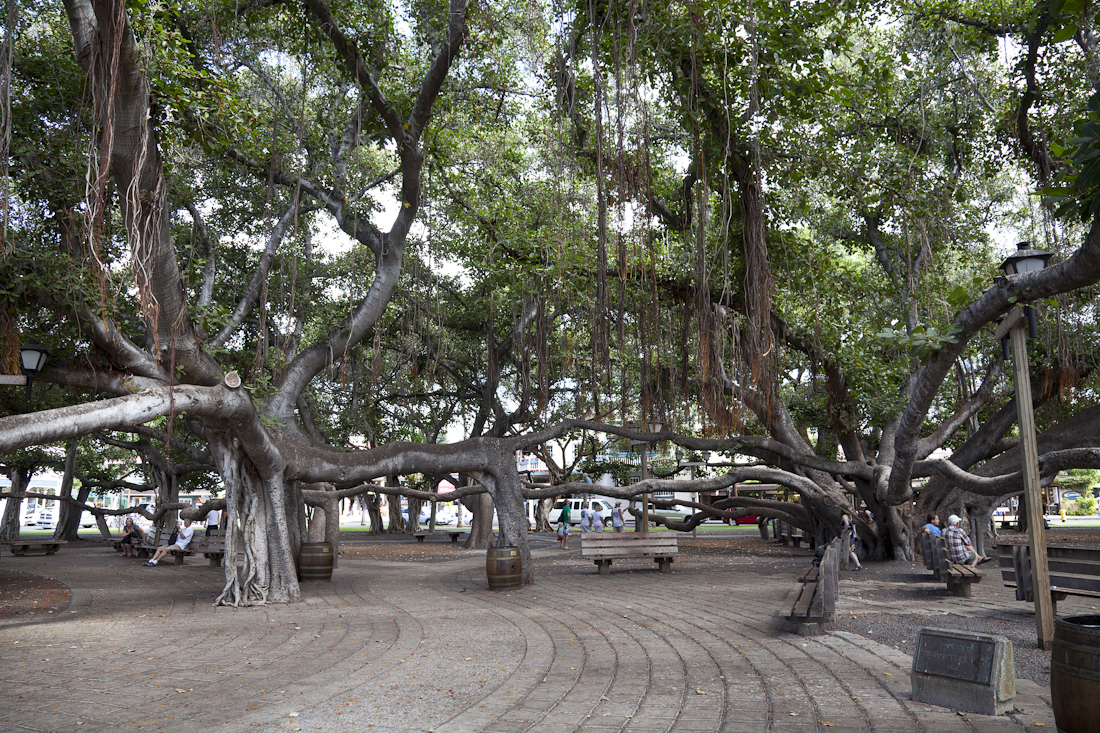 This large Banyan Tree is in Lahaina, Maui. At over 1/3 of an acre it provides a unique shaded area in front of the Courthouse.