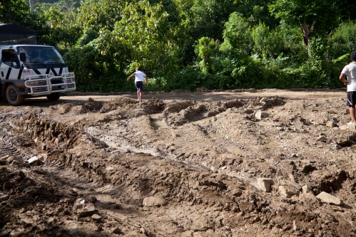 Note that he is up to the back axle in mud. We weren’t able to stay around to see how he made out.
