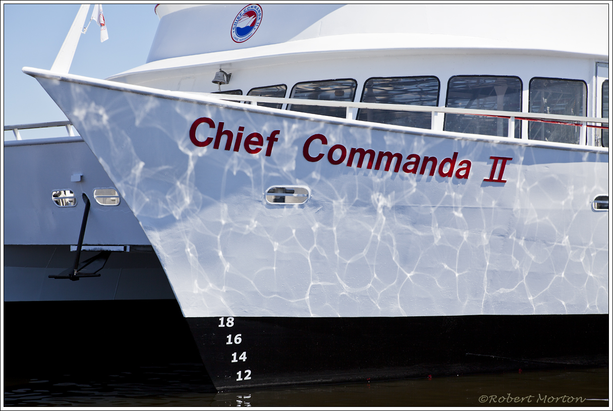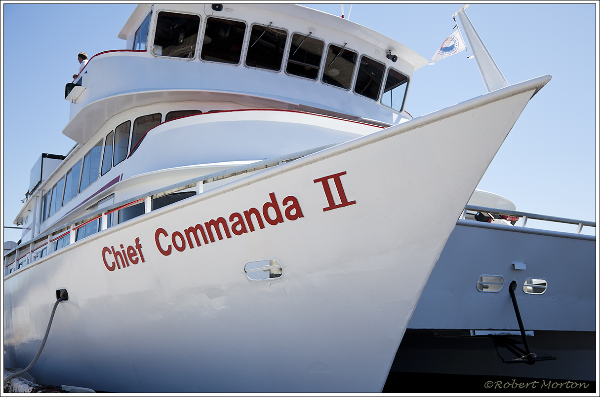 The Chief is a catamaran which is a unique design for cruise boat on a “small” lake.