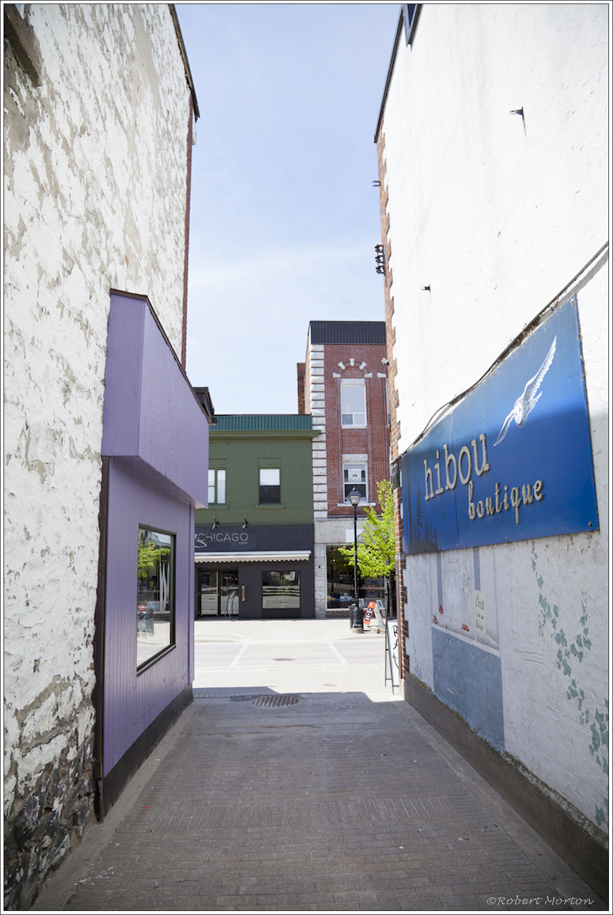 Two ground floor windows in the old Belmont Hotel building are octagonal.