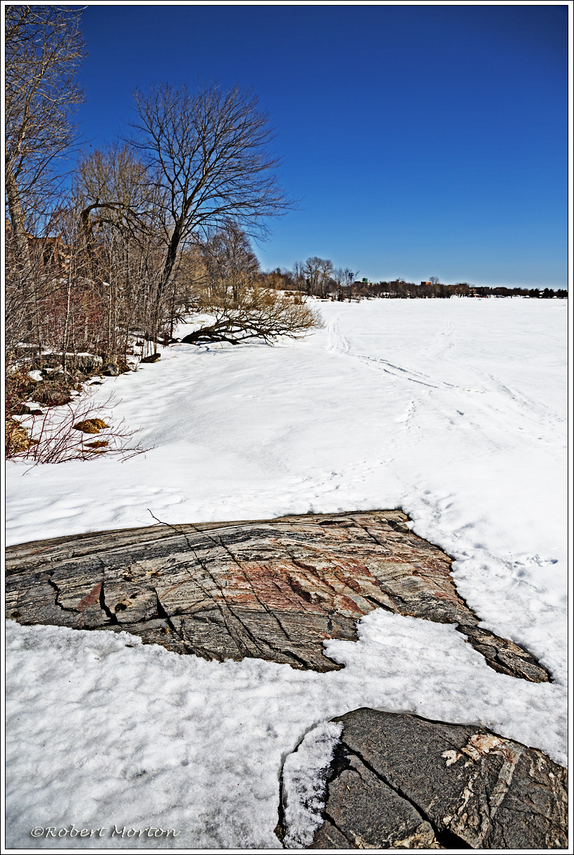 It’s just a little bit of melting but this sight strengthens the belief that spring will come when the little rivulets of water cut into the ice and create their own stream beds.