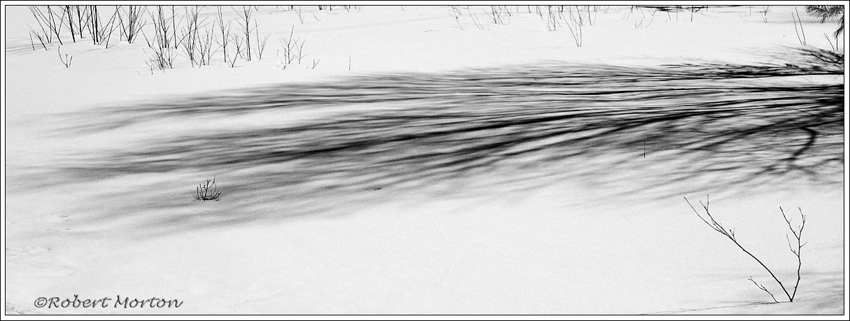 In March the sun is getting higher and the shadows of the bare trees become visible on the smooth snow.