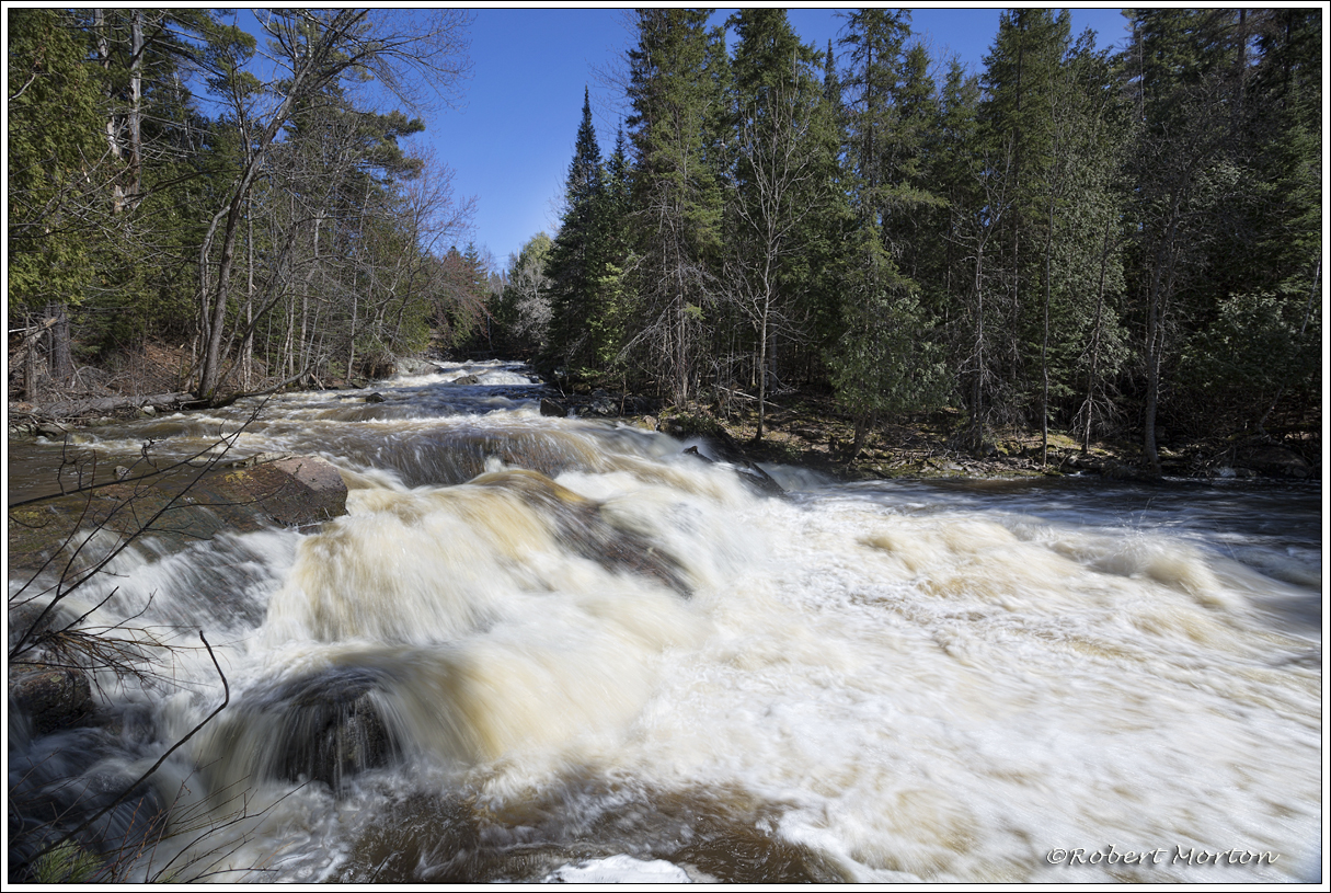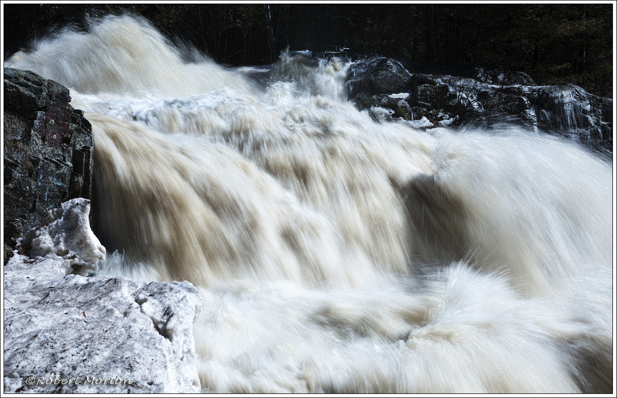 Duchesnay Creek runs high in the spring as the snow is melting upstream.