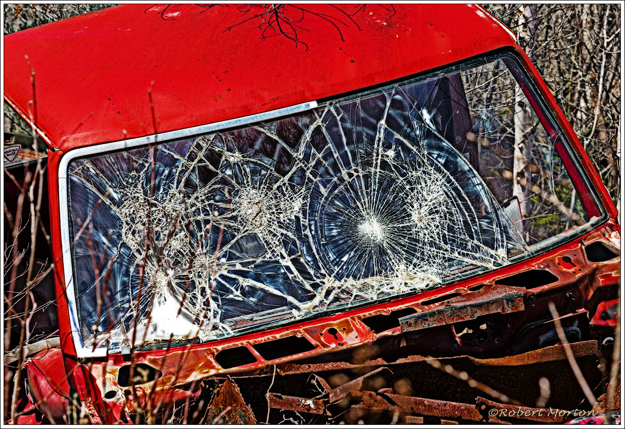 Can’t see much through the windshield of this old truck.