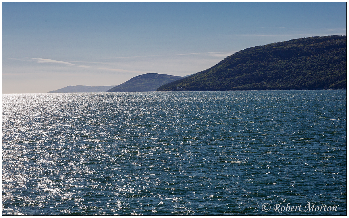 The ferry crossing from Saint Simeon to Riviere du Loup reveals headlands of the Charlevoix region on the North shore of the Saint Lawrence River.