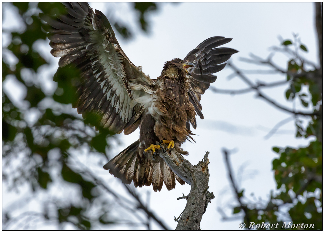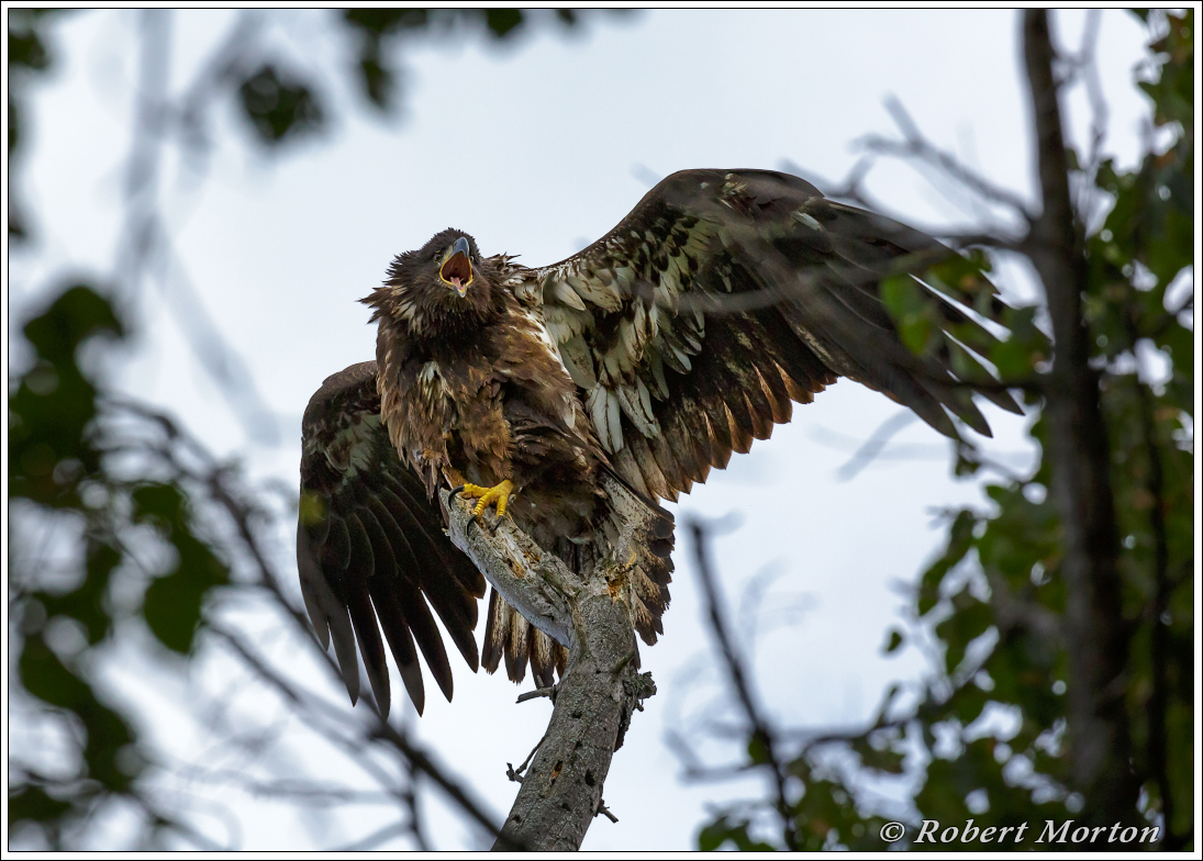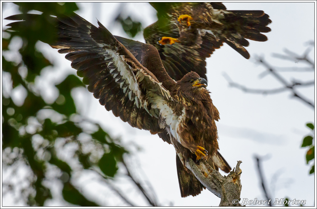 Juvenile bald eagles have to entertain themselves some way while growing up.
