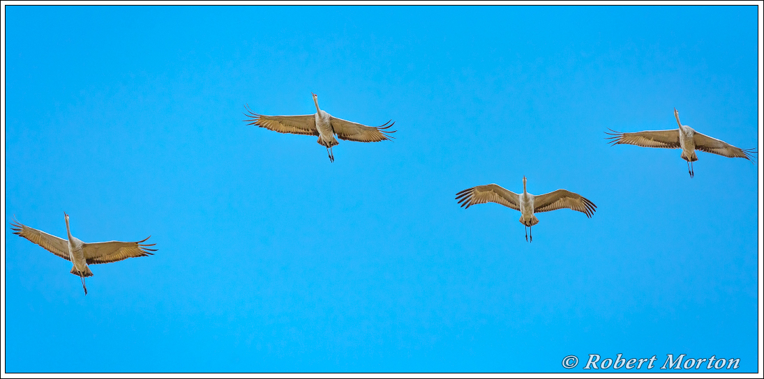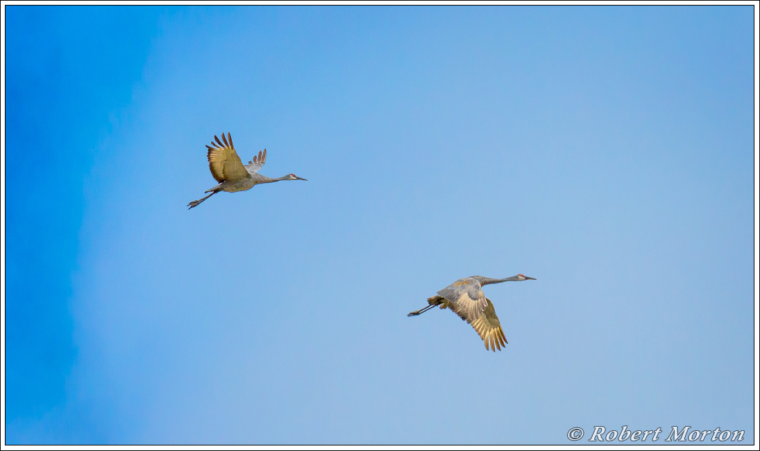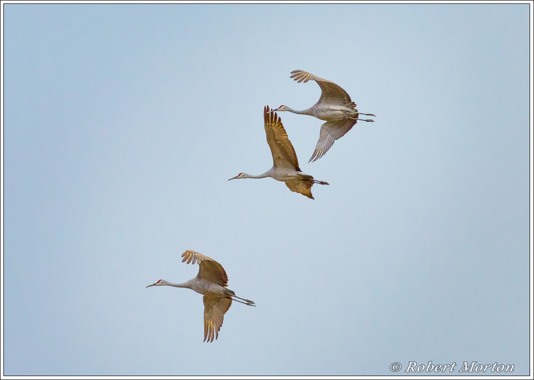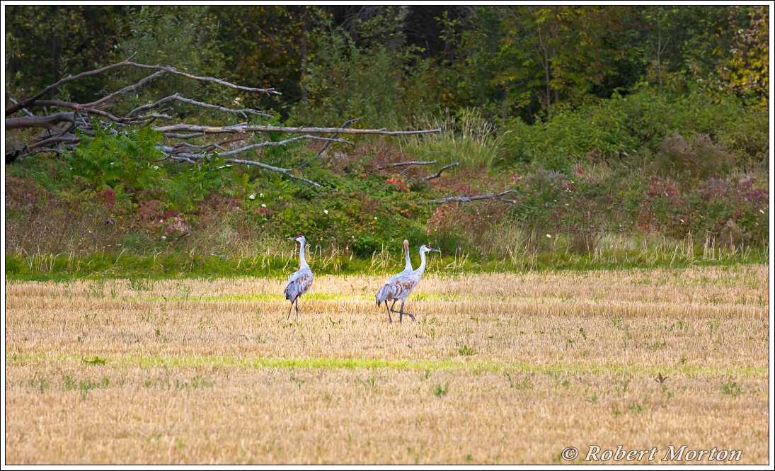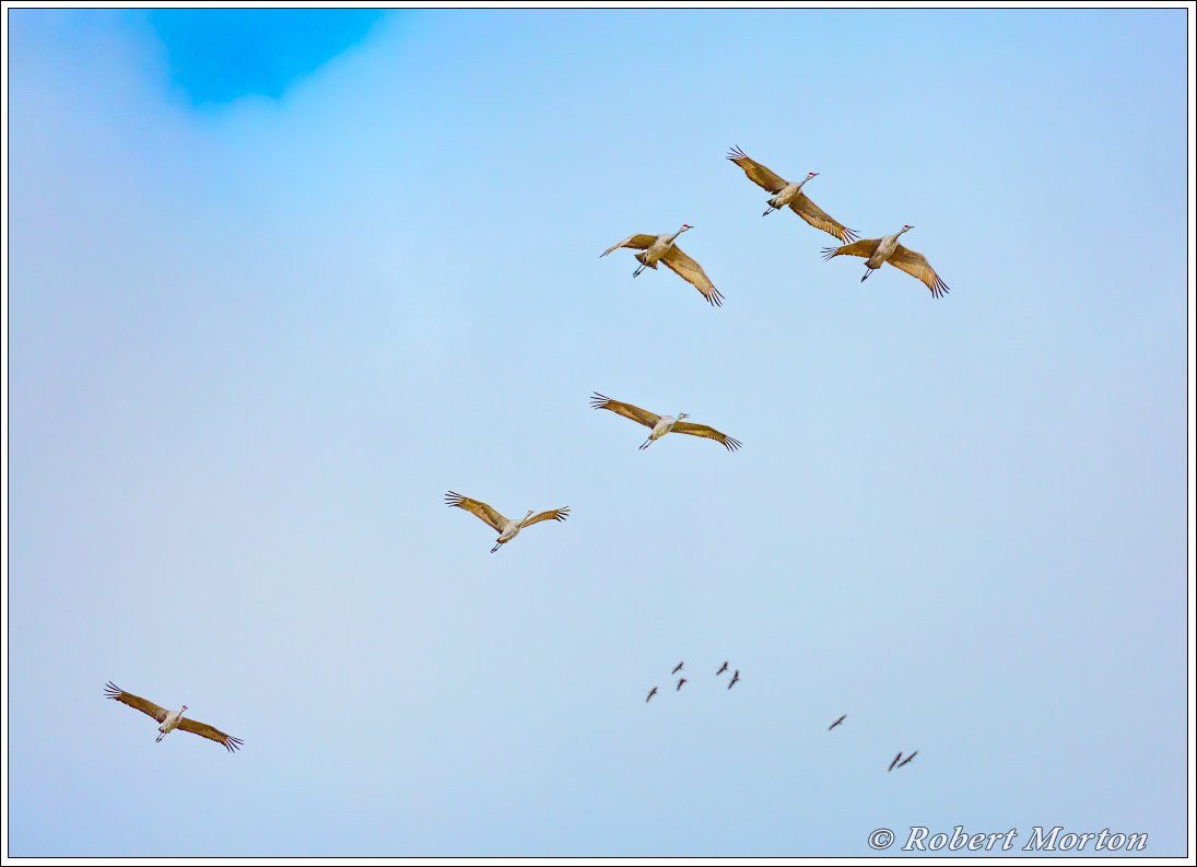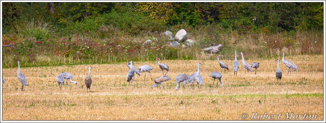 Sandhill Cranes make the trip to the warmer South in stages, pausing along the way to rest and glean the fields for food.