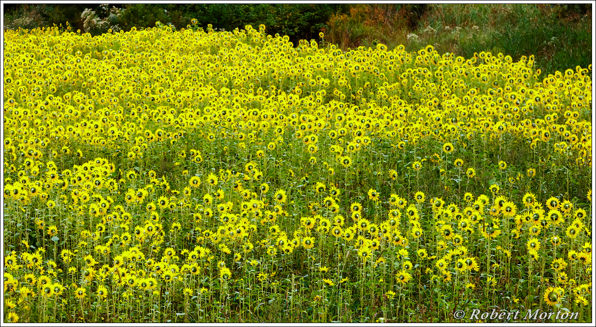 Fields of yellow appear.