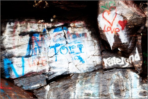 The rocks near Nipissing University have the “15 minutes of fame” records of some of the people who will eventually grow up to become solid citizens.