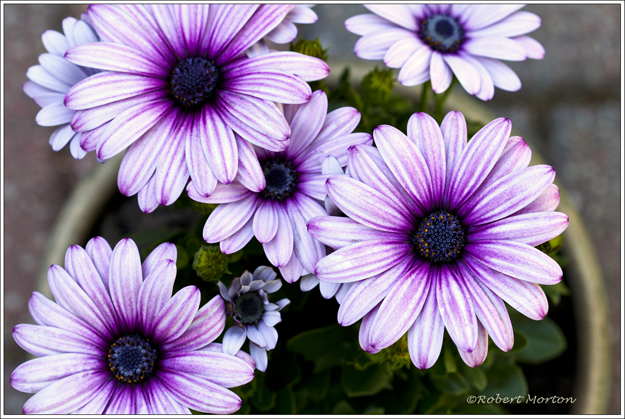 This flower is also called “African Daisy” or “Cape Daisy”. Very colourful, and the yellow ones we bought at the nursery close up at night and reopen in full daylight. We also have some purple/blue ones that don’t do this so I guess it’s not a pattern of behaviour for all of these flowers.