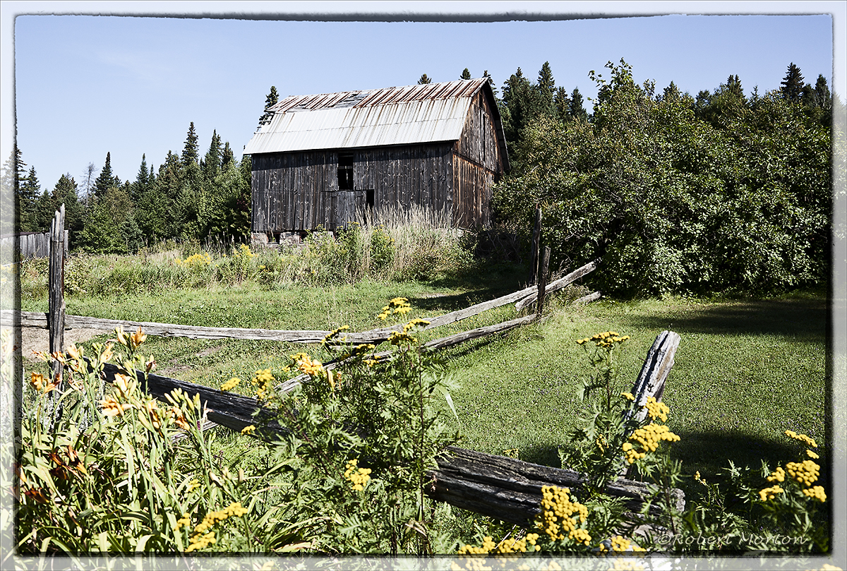 The transition between the past and the present is somewhere between the old log shed with its dug well and hand pump, and the new round hay bales.