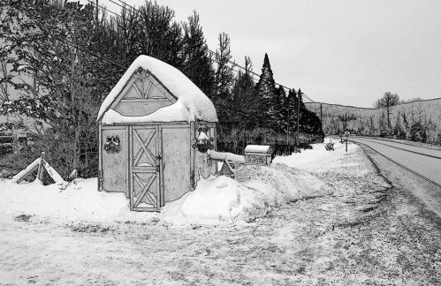 Photo of an active house in winter. A bit of warming, application of the Polaroid Backing filter and nice border plus fooling with the tint in the PS saturation adjustment layer set on soft light.