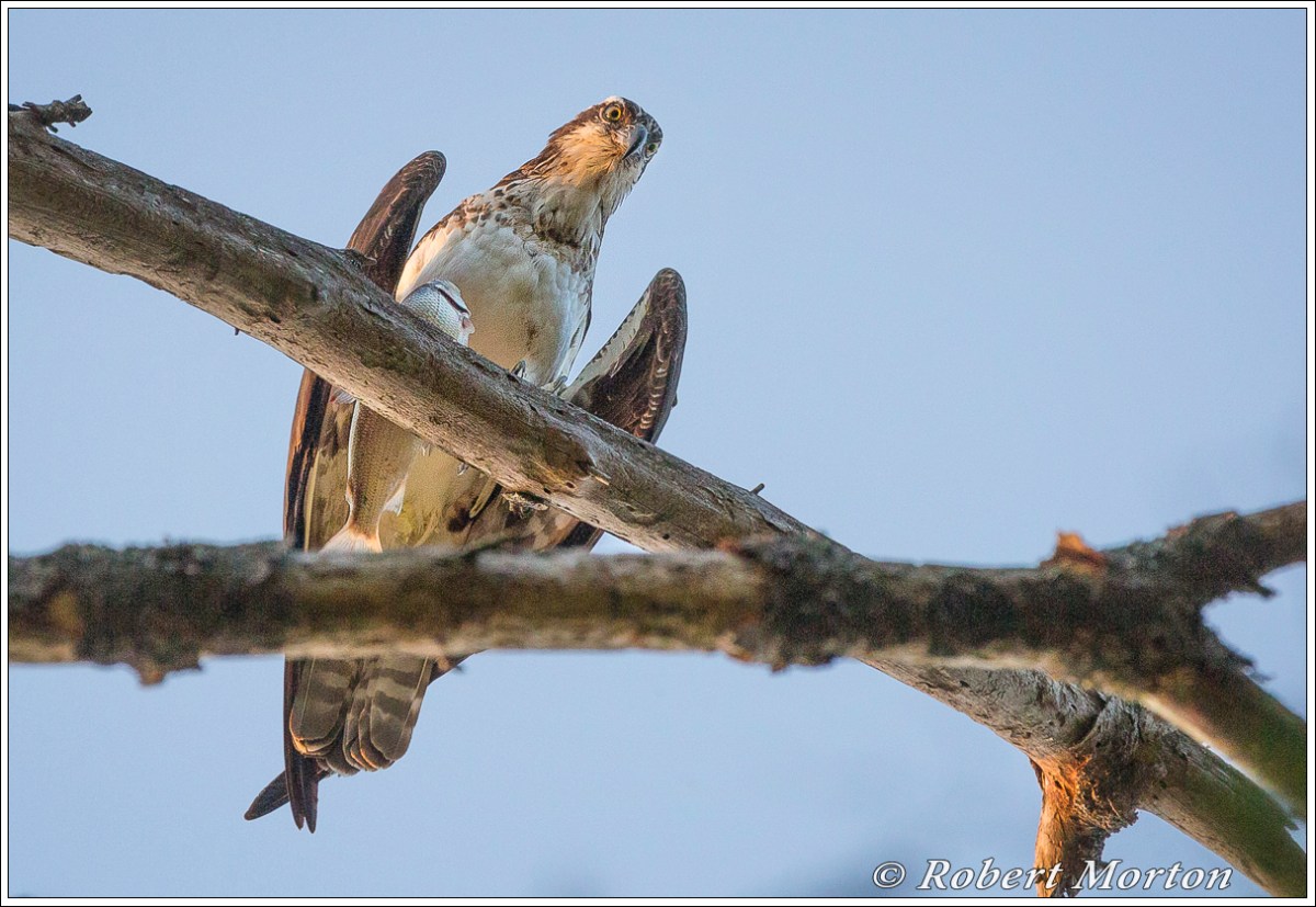 At the top of a 75 foot dead pine tree with visibility in every direction.
