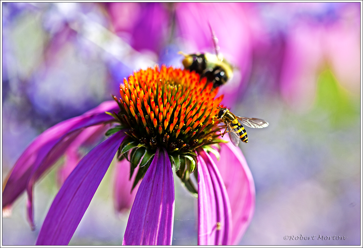 In early fall the green of the vegetation gets punctuated by incongruous bits of colour.