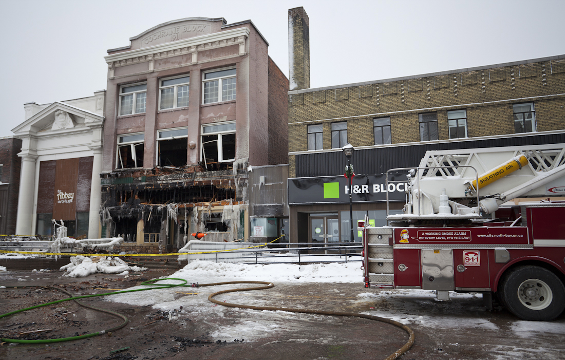 Two nights ago the Cochrane Block, built in 1911 on North Bay’s Main Street, burned.